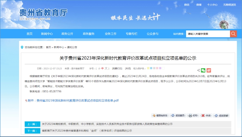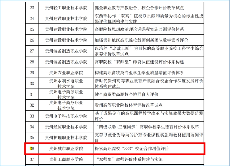 城建学院获得贵州省2023年深化新时代教育评价改革试点项目立项1项