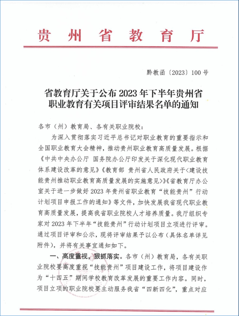 城建学院获得贵州省2023年深化新时代教育评价改革试点项目立项1项