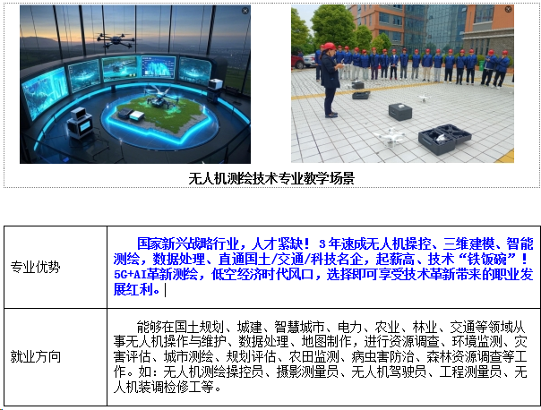 学院所有专业均结合国家发展战略规划,针对服务新型工业化、新型城镇化、乡村振兴、城市更新建设、低空经济开发、智慧城市建设等需求。突出服务工业强省、工业强市,为承接东部产业向中西部转移培养人才(新三线建设),对接交通建设、低海拔风力发电、光伏发电等新型能源基础设施等热门新兴建设领域。