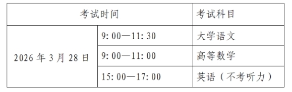 专业课考试(职业适应性或职业技能综合考查)于2026年4月25日举行,由各招生本科院校组织实施,具体时间及办法由各招生本科院校确定。