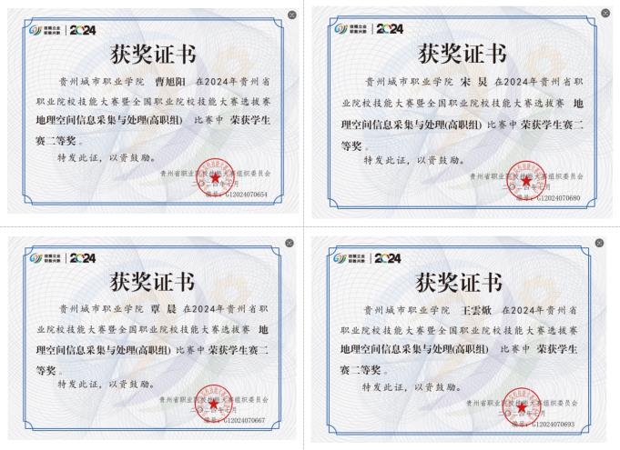 2024年在贵州省职业院校技能大赛中荣获“地理空间信息采集与处理”二等奖