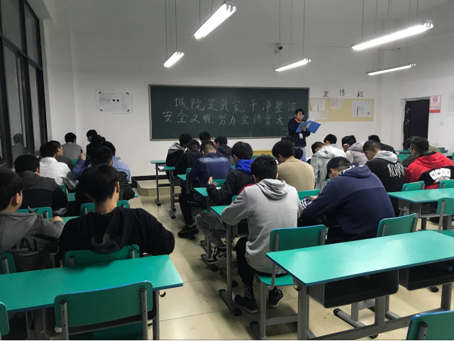 2018年3月25日,城建学院各班开展“城院是我家,干净整洁、安全文明、努力宣传靠大家”主题班会。重点给学生强调以“主人翁”的精神爱护城院的公物,打扫好教室卫生、整理好宿舍内务,遇到问题不要在网络上任意发帖,要及时向班主任反映。